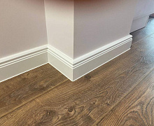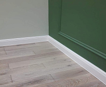 Немецкий плинтус Дёллькен из ХДФ на древесноволокнистой основе перекроет зазор между стеной и полом до 19мм.
