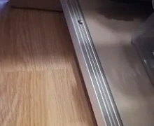 Способ монтажа: алюминиевый порожек крепится в проем между двумя напольными покрытиями на саморезы (идут в комплекте).