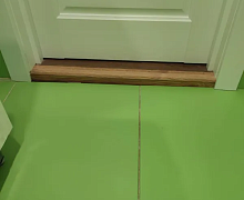 Способ монтажа: алюминиевый порожек крепится в проем между двумя напольными покрытиями на саморезы.