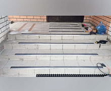 Способ монтажа: алюминиевый порожек без вставки крепится в проем между двумя напольными покрытиями или на ступени при помощи саморезов (идут в комплекте). Затем прорезиненную ПВХ вставку нужно нагреть строительным или обычным феном, либо подержать в горячей воде, чтобы материал стал мягче и легче вошел в паз профиля.